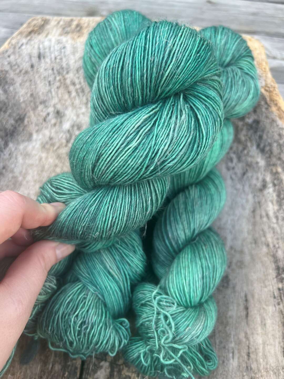 Merlin is the fantastic base that contains 90% superwash merino and 10% linen.