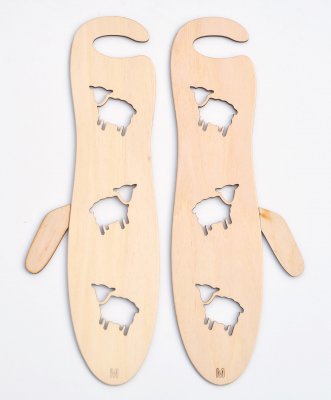Beautiful wooden booties with a pattern of alpacas. Sold in pairs.
