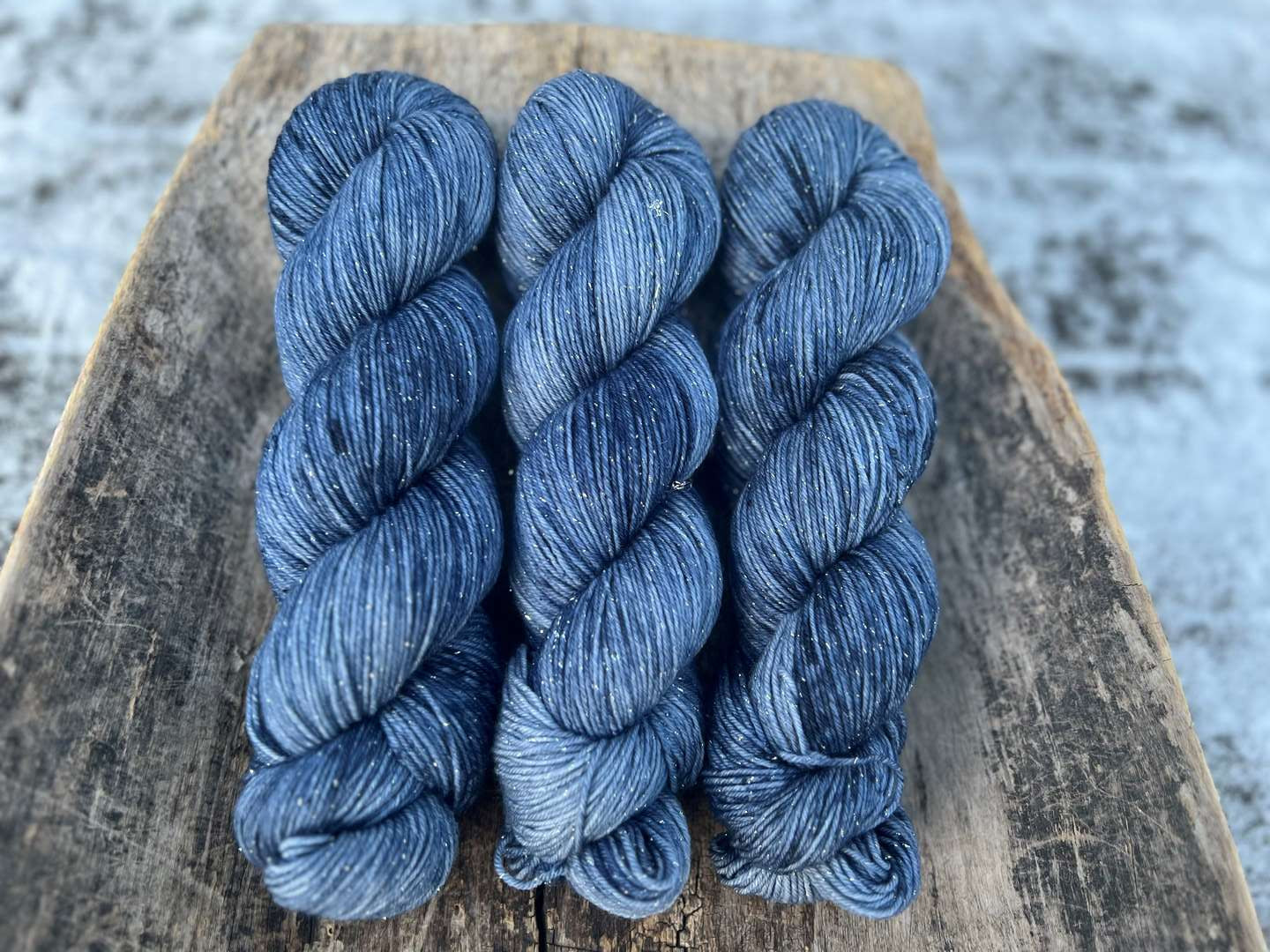En mjuk merinosockbas med silverglitter som passar jättebra till sockor, men även bla till barnkläder, sommartoppar och sjalar.