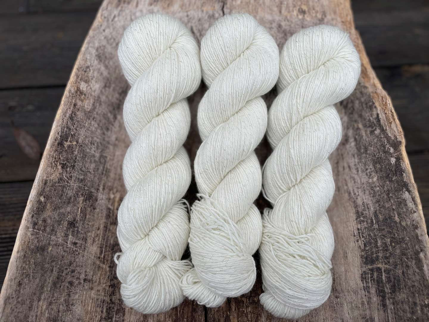 En mjuk merinosockbas med silverglitter som passar jättebra till sockor, men även bla till barnkläder, sommartoppar och sjalar.