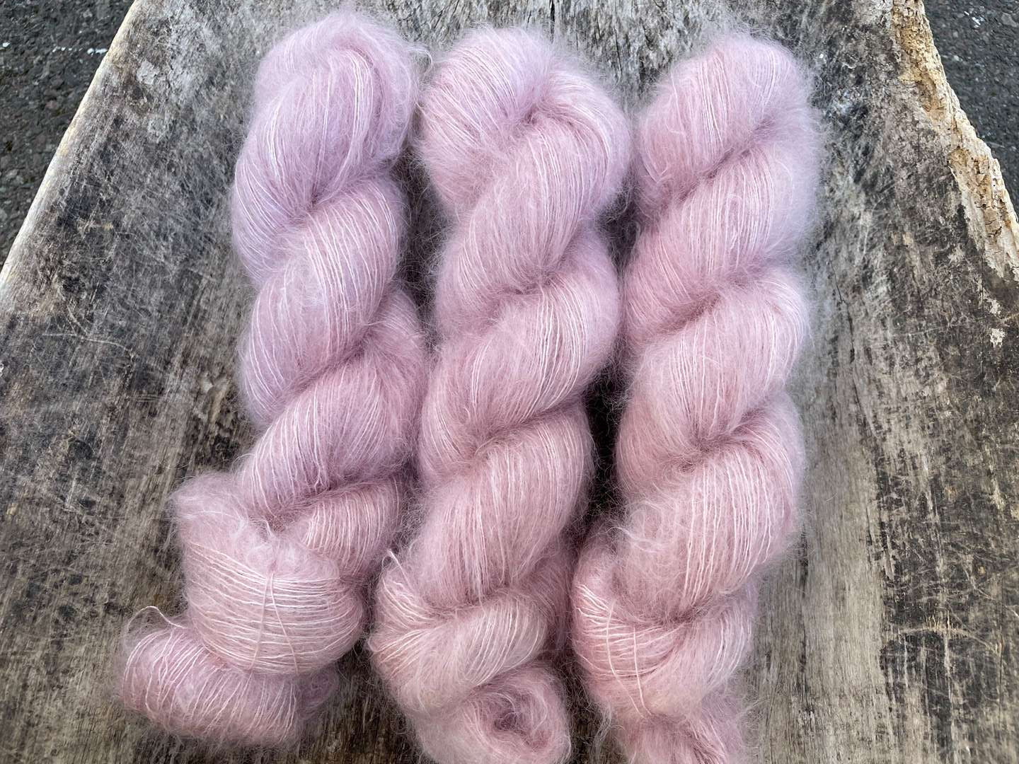 Man har tagit den allra finaste delen av mohairen från unggetter (super kid) samt tillsatt mullbärssilke. Mohair kommer från angorageten och är en mycket slitstark och elastisk.