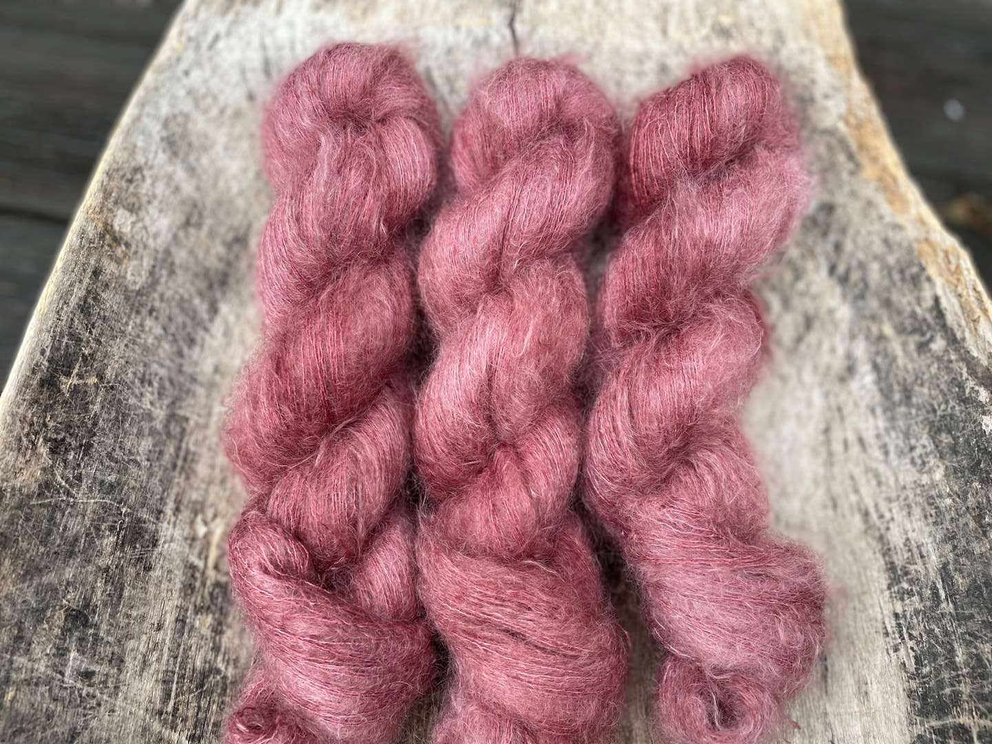 Man har tagit den allra finaste delen av mohairen från unggetter (super kid) samt tillsatt mullbärssilke. Mohair kommer från angorageten och är en mycket slitstark och elastisk.