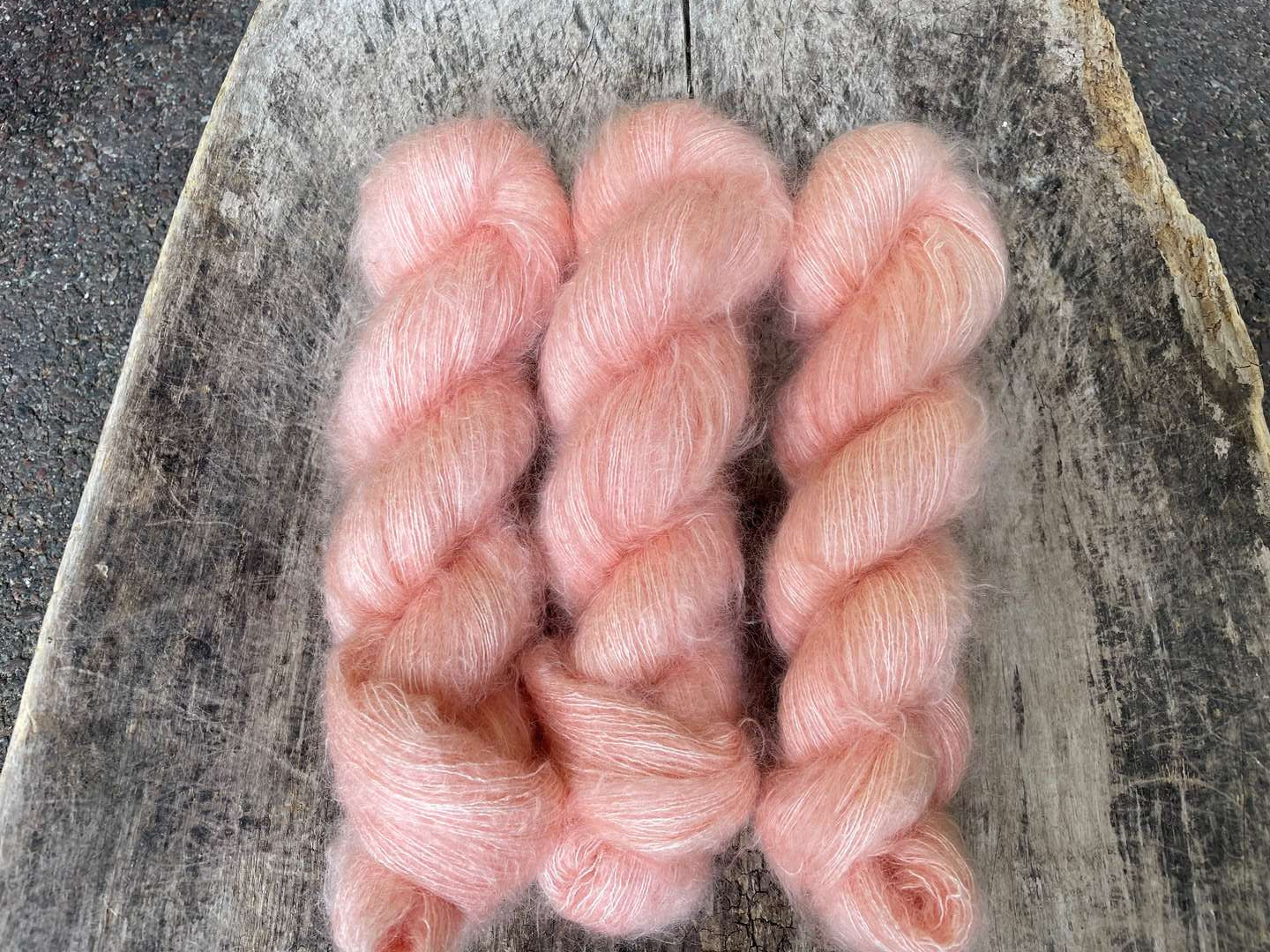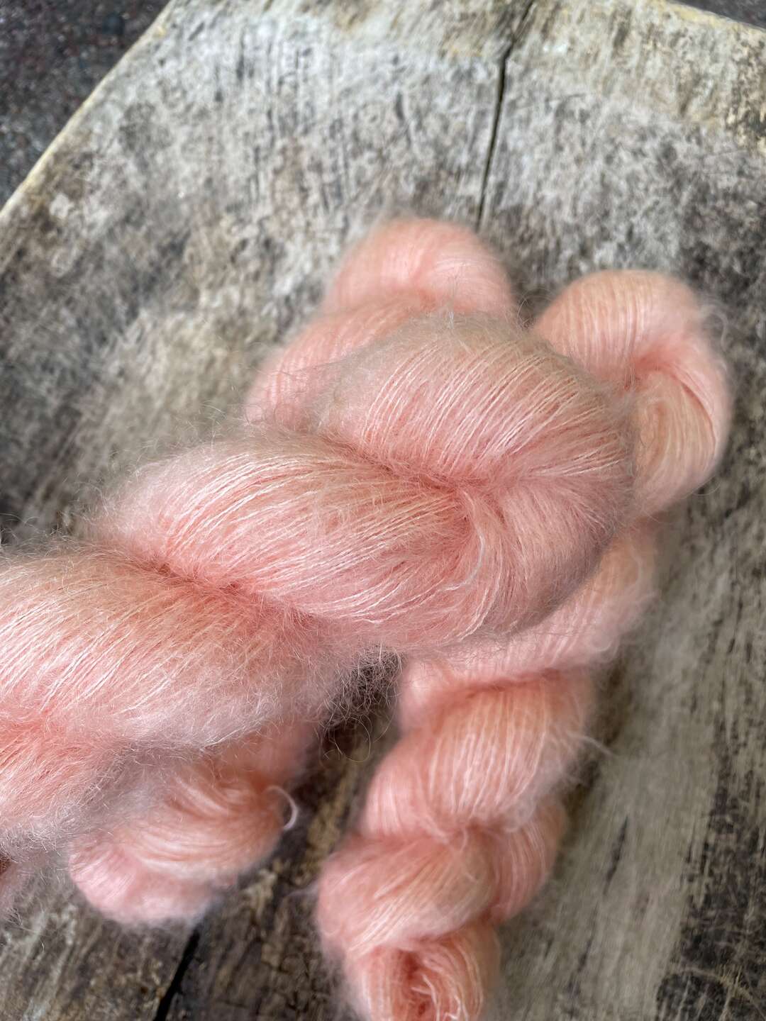 Man har tagit den allra finaste delen av mohairen från unggetter (super kid) samt tillsatt mullbärssilke. Mohair kommer från angorageten och är en mycket slitstark och elastisk.