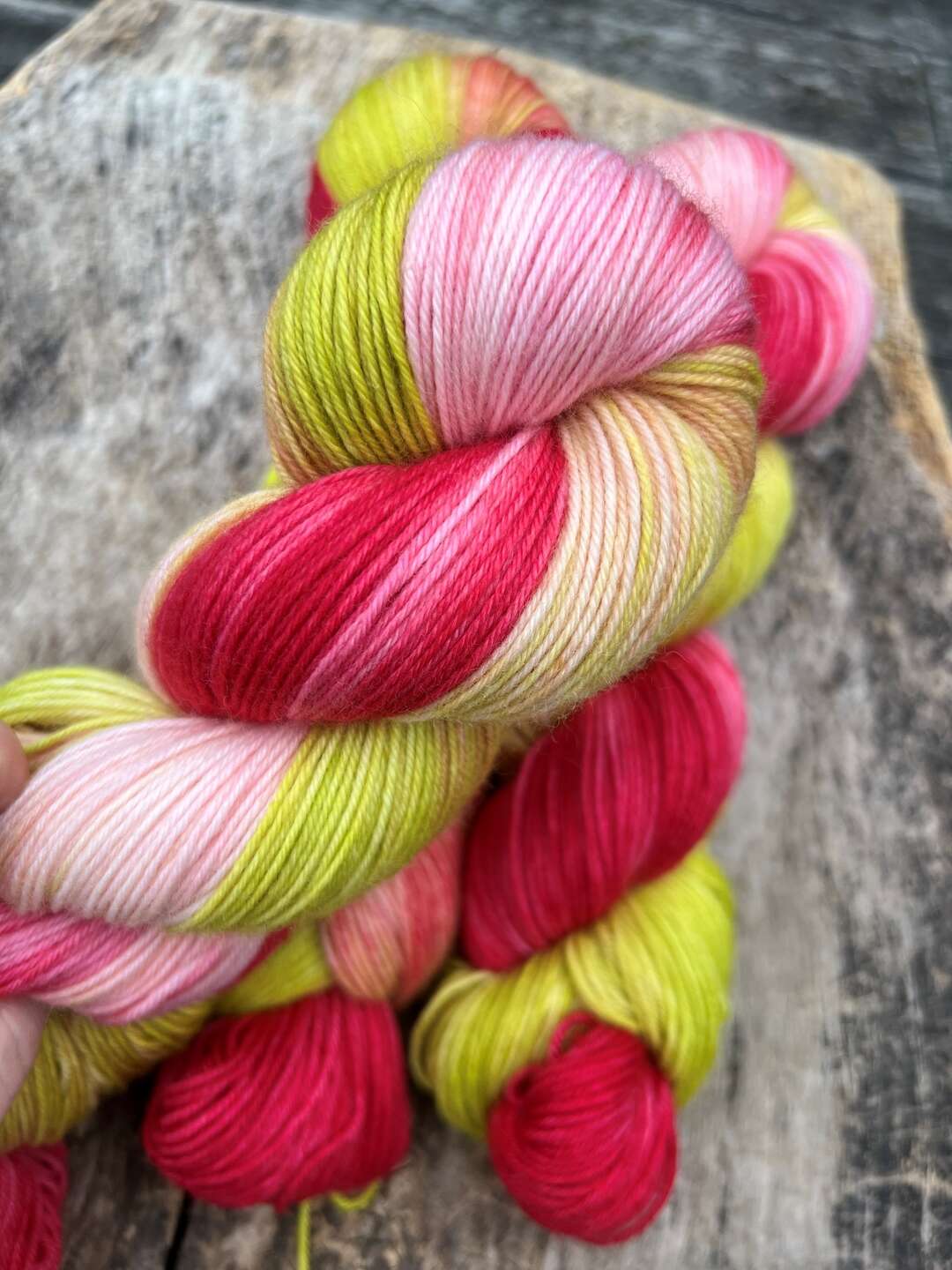 Min mjukaste sockbas som innehåller 75% superwash merino 25% nylon. Garnet mäter 400 meter per 100 gram. 4 ply.