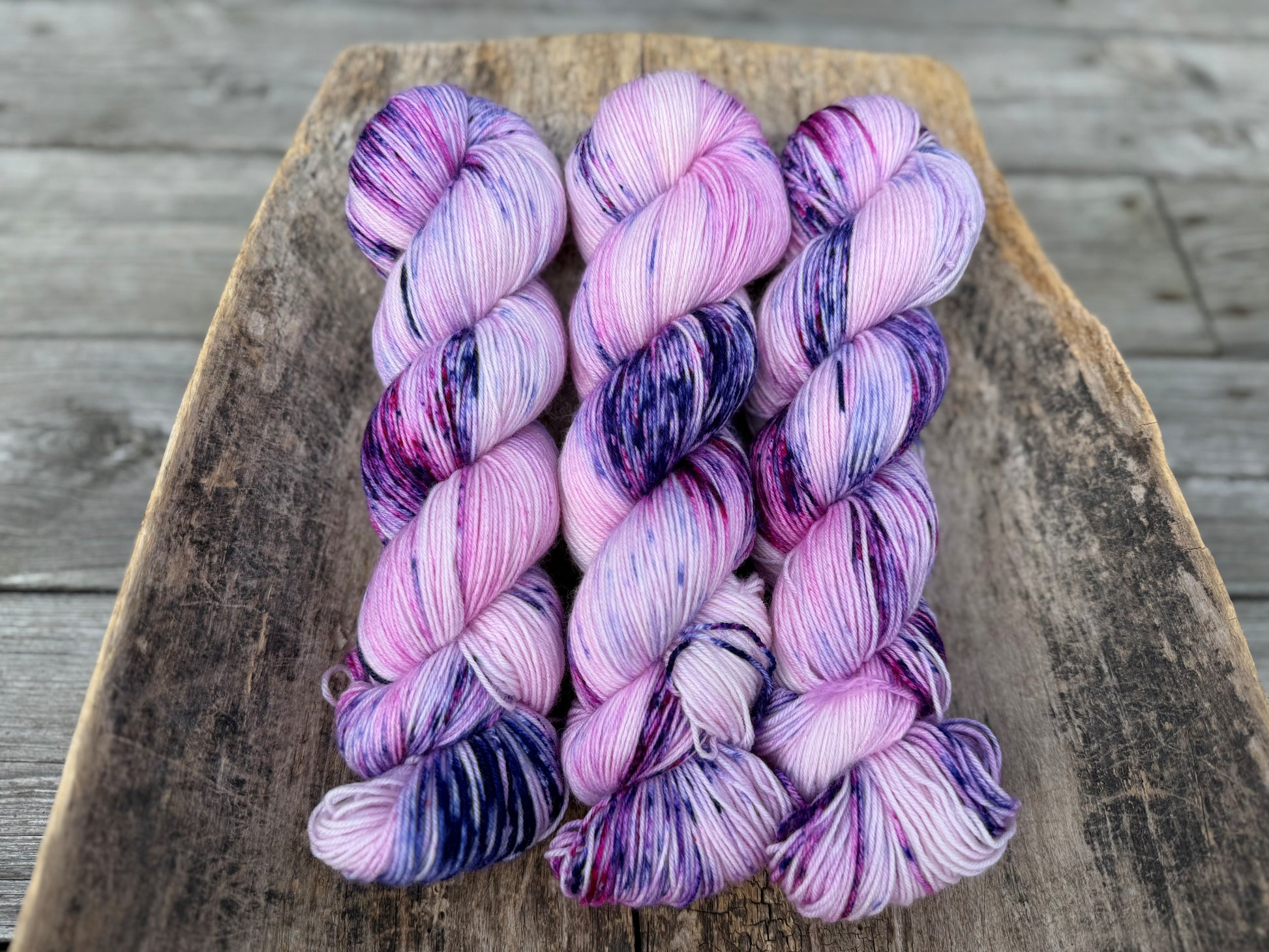 Tänk på att handfärgade garner kan "fälla" lite färg vid första tvättarna. Jag försöker alltid ta bilder som speglar verkligheten så mycket som möjligt. Men det kan skilja en del beroende på skärm mm. Då garnet är handfärgat blir aldrig härvorna exakt lika, därför kan verkligheten skilja mot bilden. Jag rekommenderar dig att varva härvorna vid större projekt.