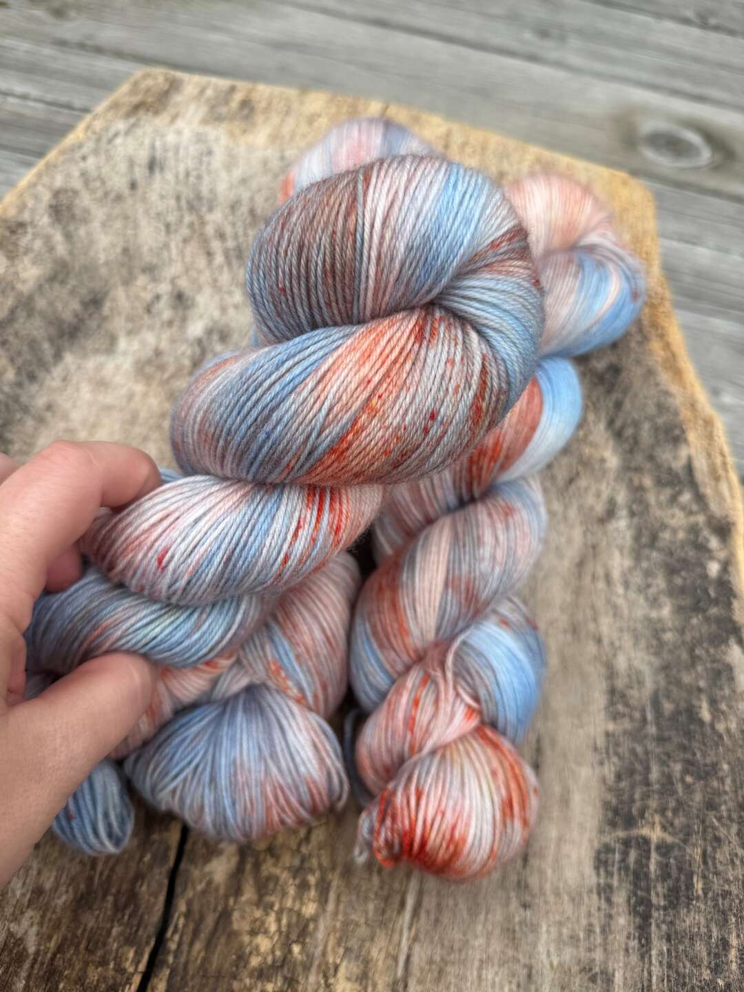 Min mjukaste sockbas som innehåller 75% superwash merino 25% nylon. Garnet mäter 400 meter per 100 gram. 4 ply.