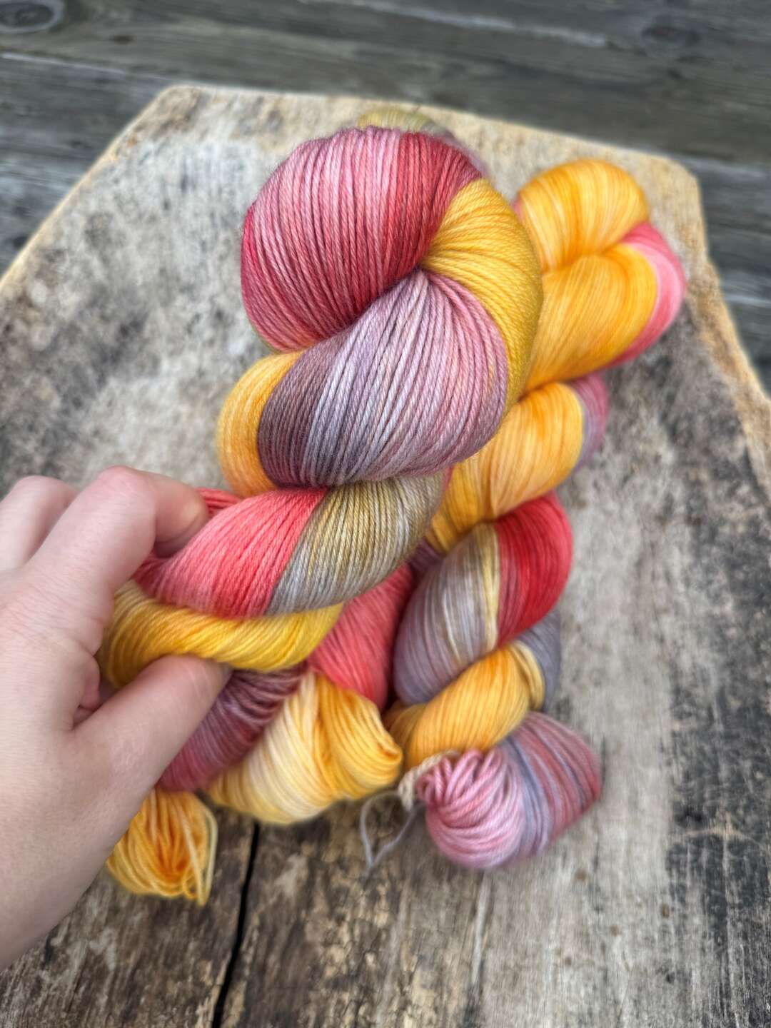 Min mjukaste sockbas som innehåller 75% superwash merino 25% nylon. Garnet mäter 400 meter per 100 gram. 4 ply.