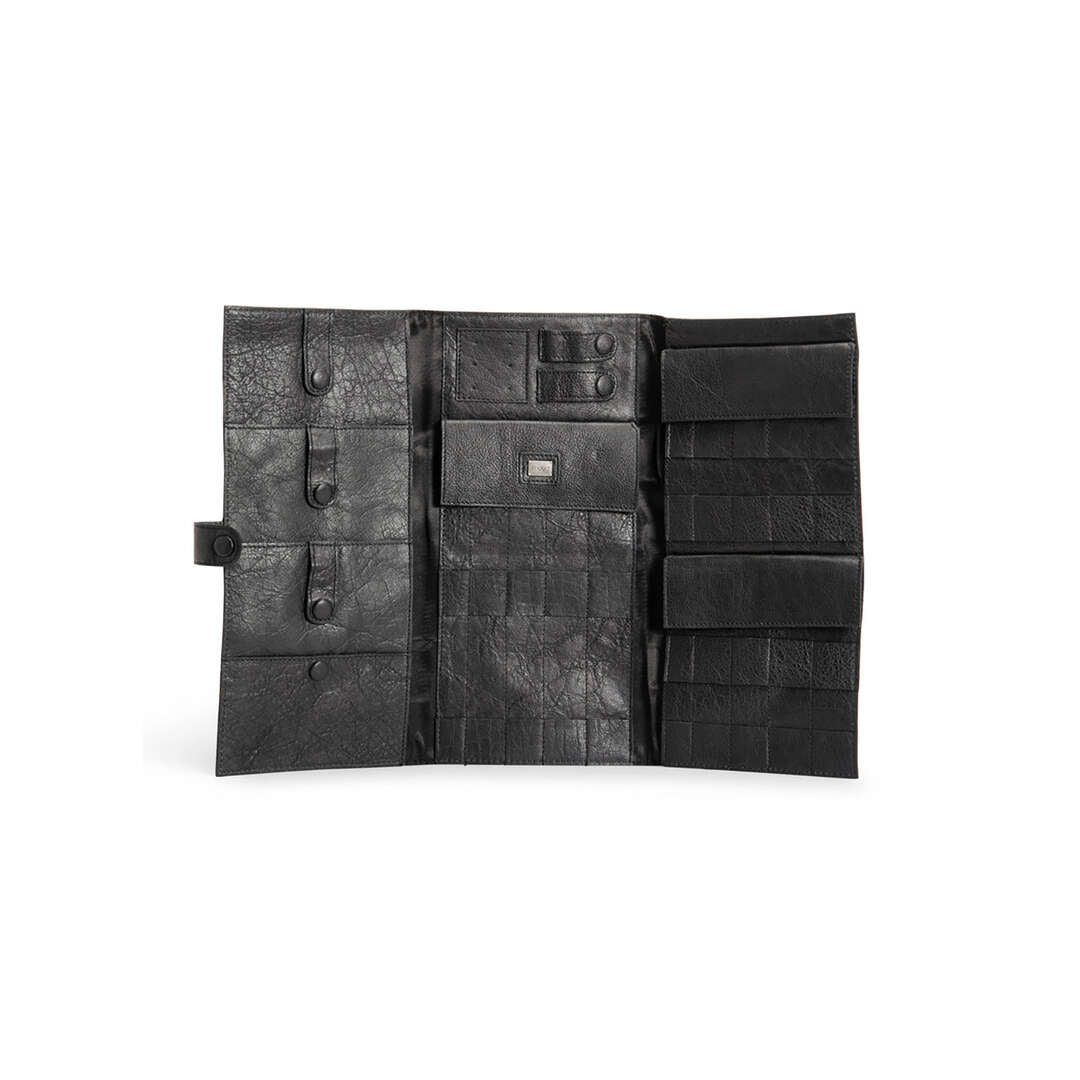 Fodralet har en praktisk ficka med knappstängning för att hålla ordning på småsaker i väskan när du är på språng. Dessutom har fodralet plats för tre stoppnålar samt måttband.