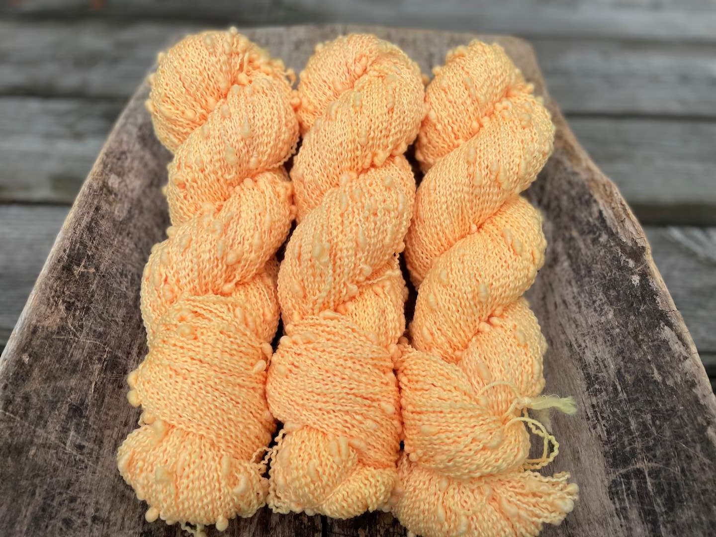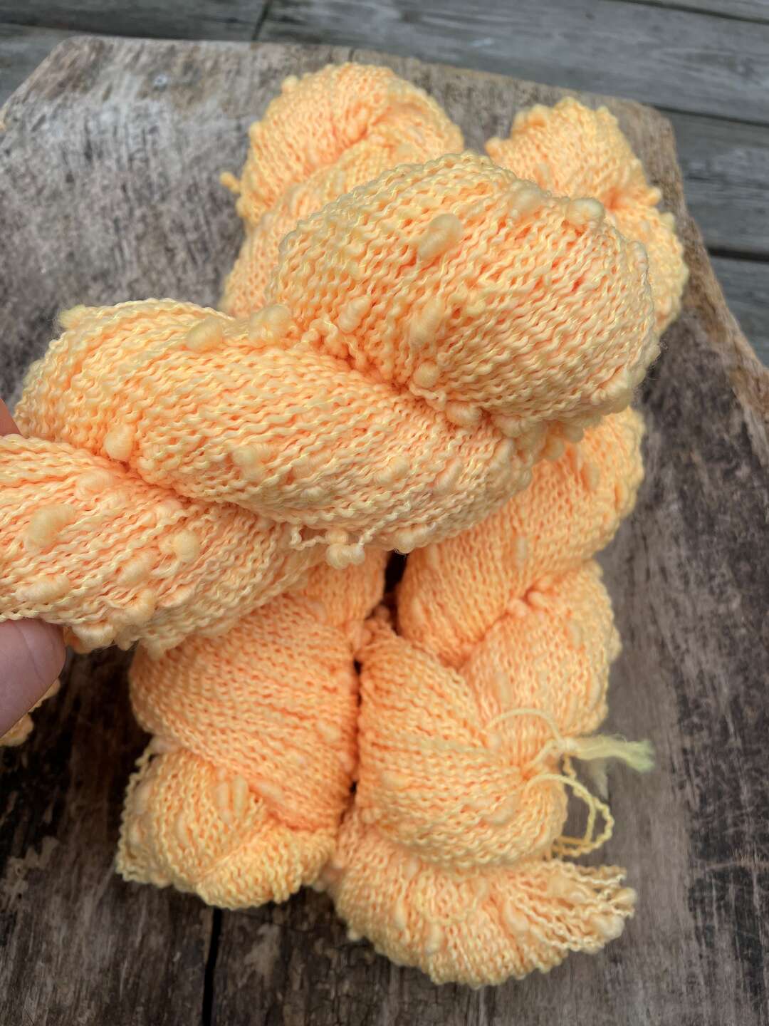 Garnet är döpt eller tekniken man använder vid spinning. Slub, vilket är att göra garnet medvetet ojämnt. Du får ett fantastiskt levande tyg oavsett om du använder garnet för sig eller tillsätter en tråd mohair. Min favorit är att ta 2 trådar slub fingering ihop med en tråd mohair. Sticka ca 5,0. Det blir verkligen magiskt.